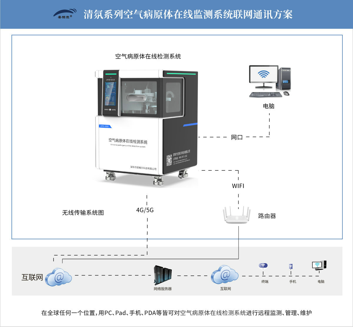 如以上功能不滿足,我們可以為您OEM/ODM更多清氛系列空氣病原體在線監測系統功能? 請聯系安帕爾!